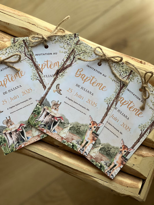 Faires-parts Baptême thème « Animaux de la Forêt »