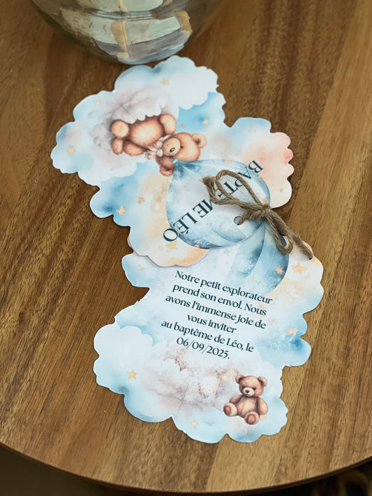 Faire-part sur-mesure avec découpe – Forme au choix (ourson, papillon, nuage…)