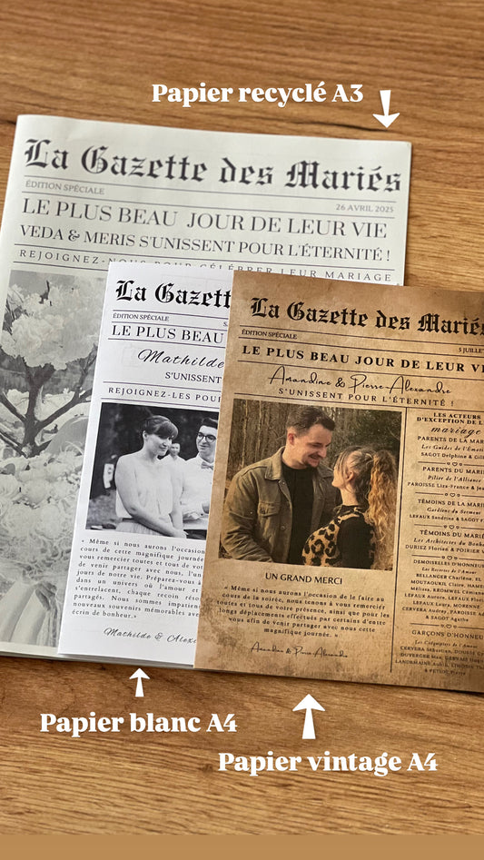 La Gazette des Mariés – Le Journal Souvenir Original (A4/A3, Papier Recyclé)