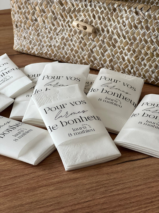 Étuis personnalisés mouchoirs mariage « Pour des larmes de bonheur… »