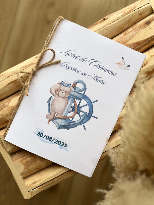 Livret de Cérémonie Personnalisé – Mariage ou Baptême (12 Pages, Relié avec Jute ou Ruban)