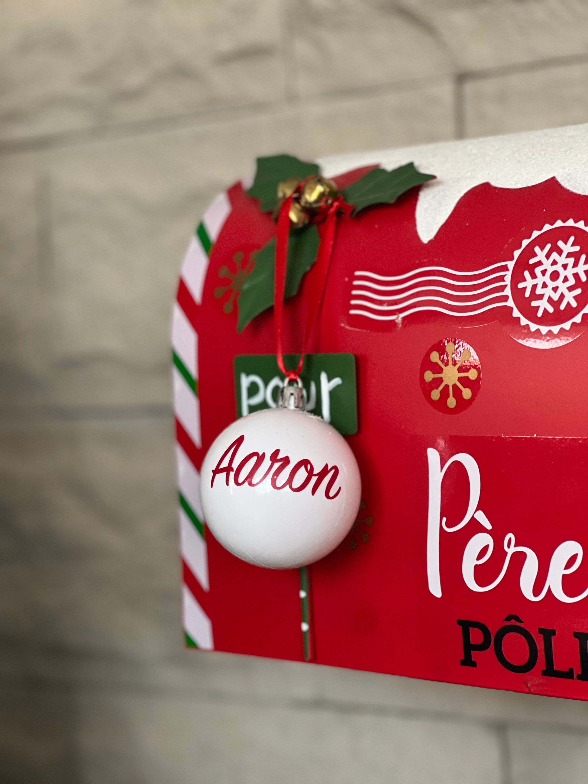 Personnalisez votre boule avec un prénom, une date, un mot doux ou même le nom de votre famille. Chaque boule est créée sur mesure pour rendre votre décoration de Noël encore plus spéciale.